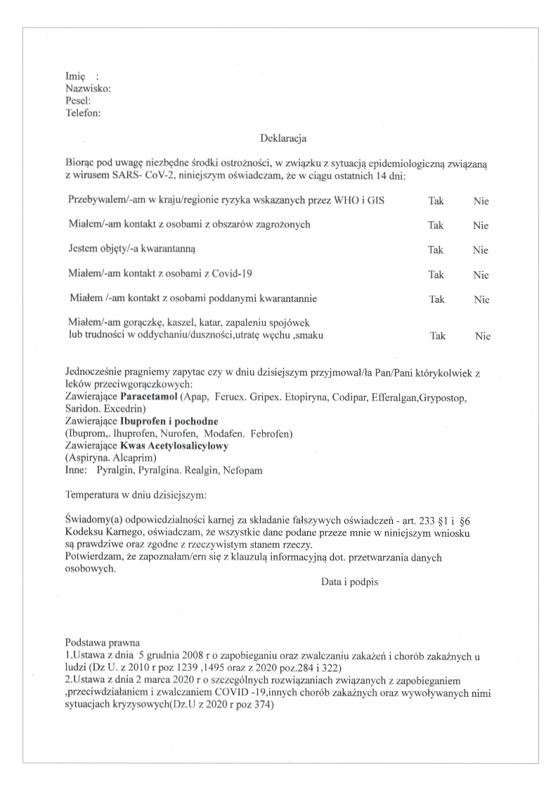 W gabinecie w pełni dostępne są środki ochrony osobistej, rękawiczki, maseczki, płyny dezynfekcyjne. Jest zainstalowany system globalnej dezynfekcji gabinetu po każdym Pacjencie. Jest obecny kontrolowany regularnie zestaw reanimacyjny a personel jest dobrze przeszkolony w rozpoznawaniu stanu zagrożenia życia i potrafi odpowiednio reagować.